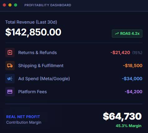 Ad spend looks great on the dashboard, but your actual profit per order is falling when you factor in all costs.